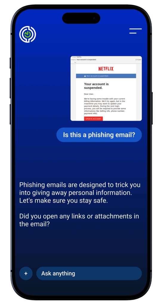 The Personal Cyber Advisor turns NCC’s mission into something real and usable for everyone. It makes online safety simple, clear and accessible, guiding you through every decision with confidence. Ask any question, anytime.